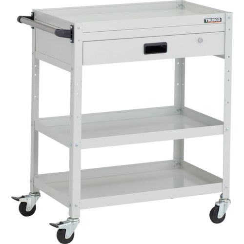 TRUSCO ツールワゴン ラビットワゴン 700X450XH880 3段 1段引出付 ハンドル付 ゴム車輪 ホワイト