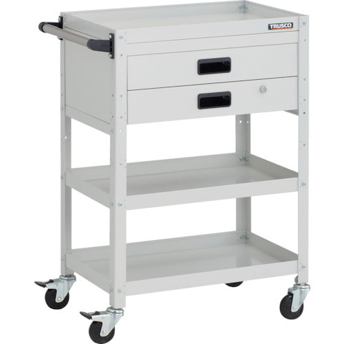 TRUSCO ツールワゴン ラビットワゴン 600X400XH880 3段 2段引出付 ハンドル付 ゴム車輪 ホワイト