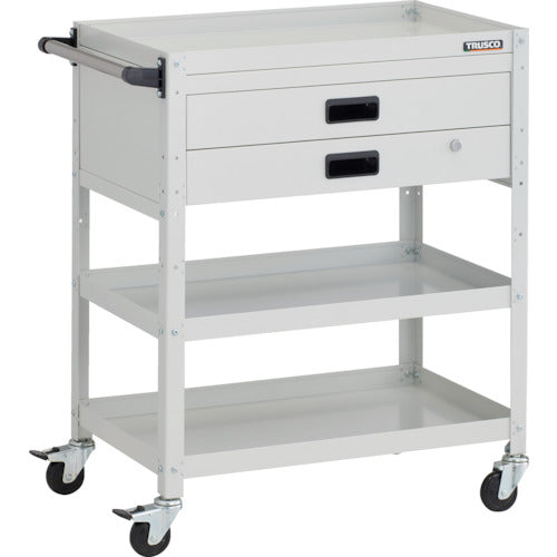 TRUSCO ツールワゴン ラビットワゴン 700X450XH880 3段 2段引出付 ハンドル付 ゴム車輪 ホワイト