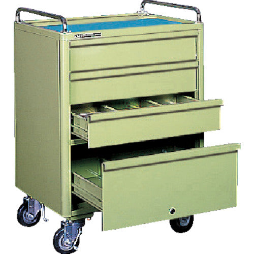 ●高級粉体焼付塗装仕上げですので錆、キズに抜群に優れています。●天板はすべてプレス絞り物を使用、強度および安全性を考慮した設計です。●引出しは自由な仕切りができ、収納に適した能率の良い部品管理が出来ます。●引出しはすべてベアリング付で軽くてスムーズな出し入れができます。●キャスターは堅牢かつスムーズで移動は自由自在です(2輪ストッパー付)。