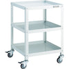 ●最大積載量(kg/台):180●均等積載量(kg/段):50●色:ホワイト●間口(mm):500●奥行(mm):500●高さ(mm):740●段数(段):3●キャスター径(mm):75●キャスター:自在式 75mm(2個) ・自在式(Wストッパー付) 75mm(2個)