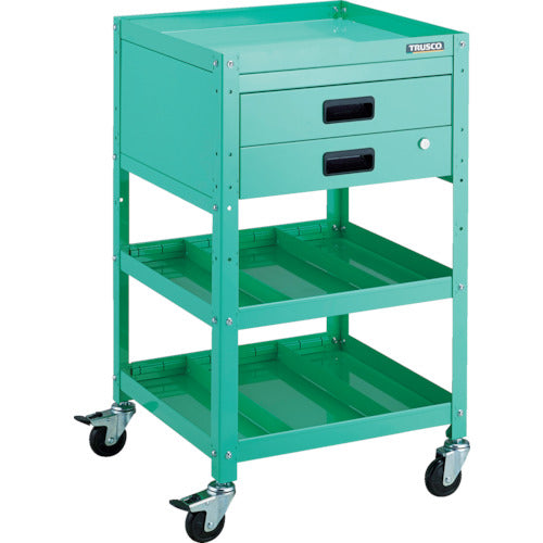 TRUSCO ツールワゴン ラビットワゴン 500X500 引出2段 仕切2段付 ヤンググリーン