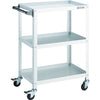 ●最大積載量(kg/台):150●均等積載量(kg/段):50●色:ホワイト●間口(mm):679●奥行(mm):400●高さ(mm):880●段数(段):3●キャスター径(mm):75