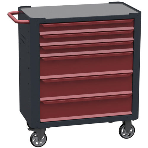 ●最大積載量(kg/台):800●均等積載量(kg/段):50●引出し(段):6●色:レッド/ブラック●間口(mm):800●奥行(mm):450●高さ(mm):950●キャスター径(mm):125