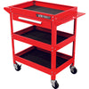 ●工具の取り出しが簡単で作業場所の近くで重宝するスチール製3段ツールワゴンです。●ドライバーや長物の収納に便利なドライバーホルダーも付いており、各トレーは仕切りが無いため広々使えます。●引き出しはセルフソフトクロージングレールを採用し完全に閉じる手前からゆっくり自動的に閉まります(セルフソフトクロージング機能は引き出しが完全に閉じる約4cm手前で作動します)。●トレー全段引き出しの傷防止保護マットが付属しています。