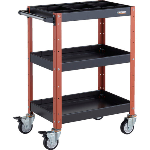 TRUSCO ツールワゴン バーディワゴン 600X400XH880 深3段 1段仕切板付 ウレタン車輪 ブラック/オレンジ