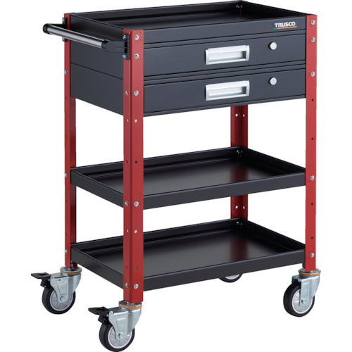 TRUSCO ツールワゴン バーディワゴン 600X400 引出2段付 ウレタン車輪 ブラック/レッド