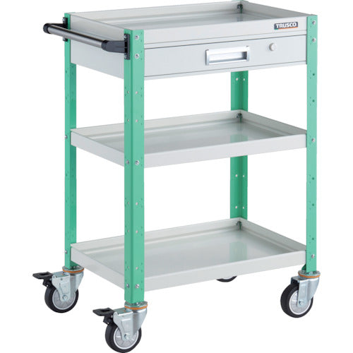 TRUSCO ツールワゴン バーディワゴン 600X400 引出付 ウレタン車輪 ホワイト/ヤンググリーン