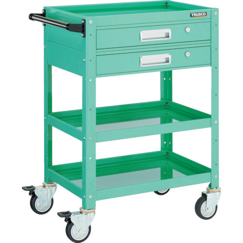 TRUSCO ツールワゴン バーディワゴン 750×500 引出2段付 ウレタン車輪 ヤンググリーン