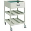 ●最大積載量(kg/台):60●均等積載量(kg/段)棚板:20●均等積載量(kg/段)引出し:10●色:ネオグレー●間口(mm):501●奥行(mm):535●高さ(mm):896●段数(段):3●キャスター径(mm):75●こぼれ止め高さ(mm):40●棚板調整ピッチ(mm):50