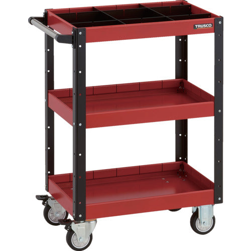 TRUSCO ツールワゴン イーグルワゴン 600X400XH880 深型3段 1段仕切板付 ウレタン車輪 レッド/ブラック