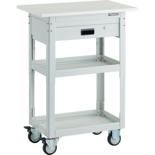 TRUSCO ツールワゴン ドルフィン 高さ調節式 天板付 750×500 1段引出 ホワイト ウレタン車輪