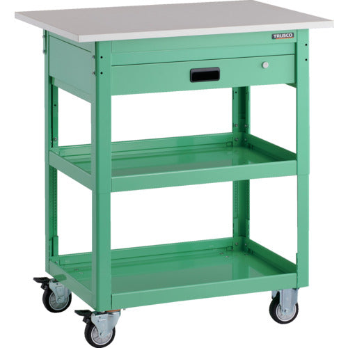TRUSCO ツールワゴン ドルフィン 高さ調節式 天板付 900×600 1段引出 ヤンググリーン ウレタン車輪