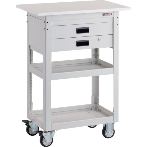 TRUSCO ツールワゴン ドルフィン 高さ調節式 天板付 750×500 2段引出 ホワイト ウレタン車輪