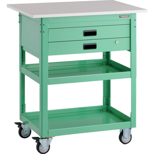 TRUSCO ツールワゴン ドルフィン 高さ調節式 天板付 900×600 2段引出 ヤンググリーン ウレタン車輪
