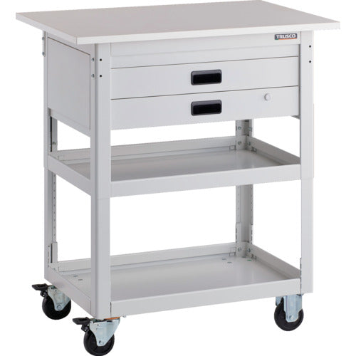 TRUSCO ツールワゴン ドルフィン 高さ調節式 天板付 900X600 2段引出 ホワイト