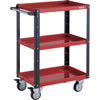 ●最大積載量(kg/台):250●均等積載量(kg/段):120●色:支柱ブラック/他レッド●間口(mm):679●奥行(mm):400●高さ(mm):880●段数(段):3●キャスター径(mm):100●こぼれ止め高さ(mm):40●棚板:こぼれ止め付棚板(表裏両用)