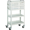 ●独自のエンボス加工で強度に優れたツールワゴンに便利なA4樹脂製引出しをセットしました。●車輪と共に車軸もロックするターンロック式ダブルストッパーです。●棚板の組付けは、内側にフランジ付ナットを使用しているため、外側から六角レンチで締め付けることで組み立てが可能です。