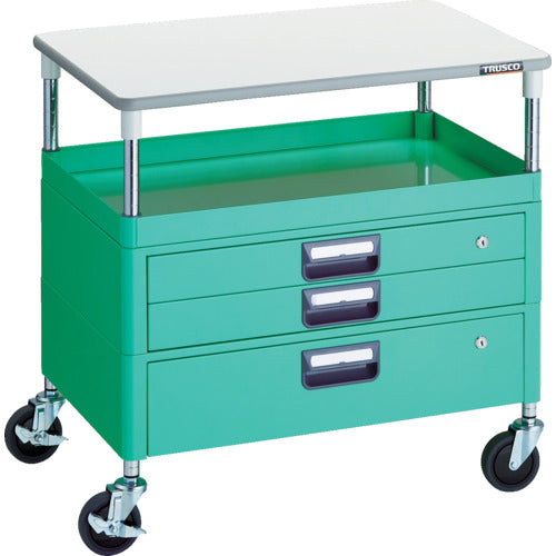 TRUSCO ツールワゴン フェニックスワゴン 省音 750X500 H740 引出付 天板付 ヤンググリーン