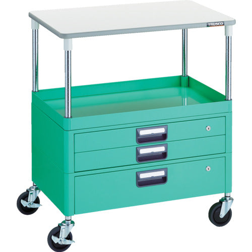 TRUSCO ツールワゴン フェニックスワゴン 省音 750X500 H880 引出付 天板付 ヤンググリーン