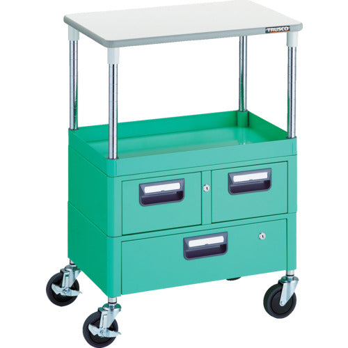 TRUSCO ツールワゴン フェニックスワゴン 省音 600X400 H880 引出付 天板付 ヤンググリーン