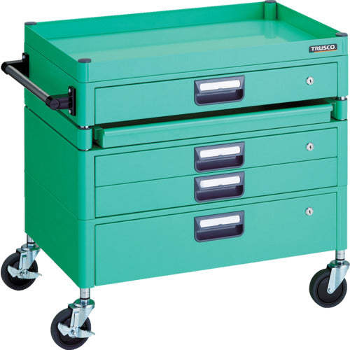 TRUSCO ツールワゴン フェニックスワゴン 省音 750X500 H740 引出付 スライド1段 ヤンググリーン