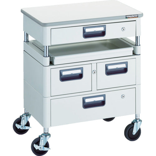TRUSCO ツールワゴン フェニックスワゴン 省音 600X400 H740 引出付 スライド1段 天板付 ホワイト