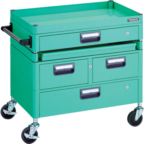 TRUSCO ツールワゴン フェニックスワゴン 省音 750X500 H740 引出付 スライド1段 ヤンググリーン