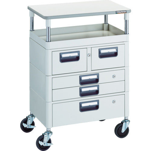 TRUSCO ツールワゴン フェニックスワゴン 省音 600X400 H880 引出付 天板付 ホワイト