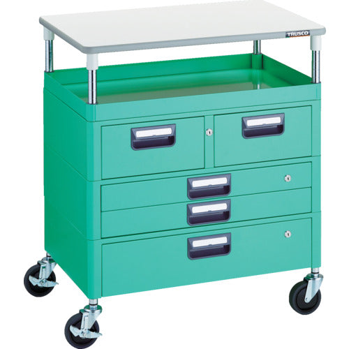 TRUSCO ツールワゴン フェニックスワゴン 省音 750X500 H880 引出付 天板付 ヤンググリーン