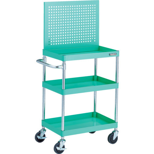 TRUSCO ツールワゴン フェニックスワゴン 省音 600X400XH880 3段 上部パンチングパネル仕様 ヤンググリーン