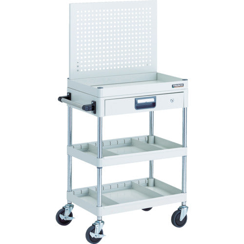 TRUSCO ツールワゴン フェニックスワゴン 省音 600X400 仕切2段付 引出付 上部パンチングパネル仕様 ホワイト