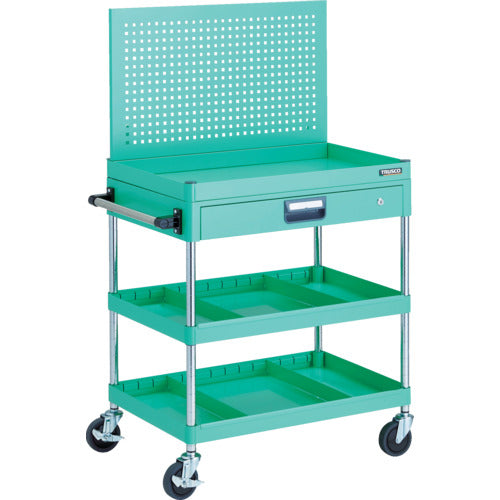 TRUSCO ツールワゴン フェニックスワゴン 省音 750X500 仕切2段付 引出付 上部パンチングパネル仕様 ヤンググリーン