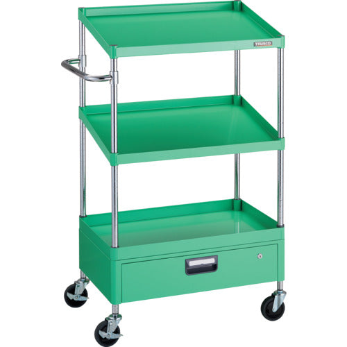 TRUSCO ツールワゴン フェニックスワゴン 省音 750X500XH1300 1段 傾斜2段 1段引出付 ヤンググリーン