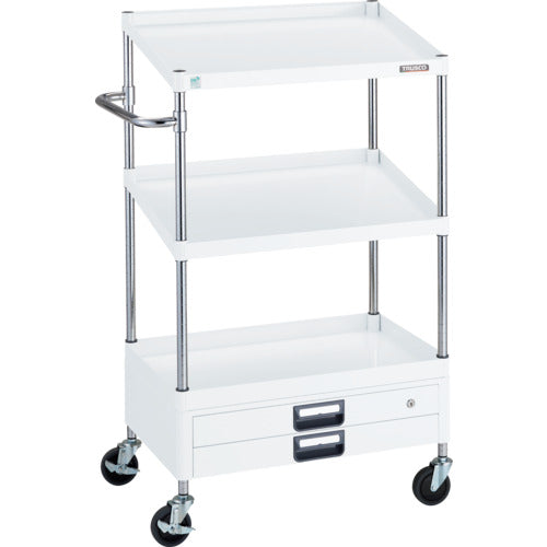 TRUSCO ツールワゴン フェニックスワゴン 省音 750X500XH1300 1段 傾斜2段 2段引出付 ホワイト