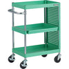 ●最大積載量(kg/台):150●均等積載量(kg/段):100●色:ヤンググリーン●間口(mm):690●奥行(mm):400●高さ(mm):880●段数(段):3●支柱径(mm):25.4●キャスター径(mm):100●こぼれ止め高さ(mm):50●棚板調整ピッチ(mm):25