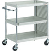 ●最大積載量(kg/台):150●均等積載量(kg/段):100●色:ホワイト●間口(mm):840●奥行(mm):500●高さ(mm):880●段数(段):3●支柱径(mm):25.4●キャスター径(mm):100●こぼれ止め高さ(mm):50●棚板調整ピッチ(mm):25
