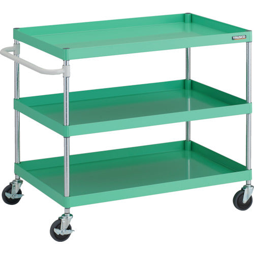 TRUSCO ツールワゴン フェニックスワゴン 抗ウィルスハンドル 省音 1000X650XH880 3段 ヤンググリーン