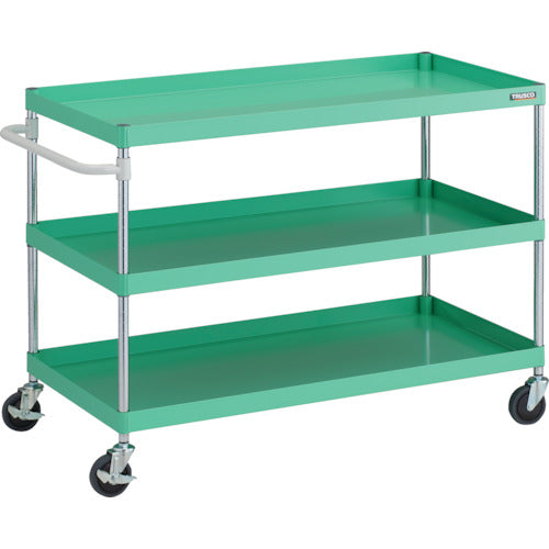 TRUSCO ツールワゴン フェニックスワゴン 抗ウィルスハンドル 省音 1200X600XH880 3段 ヤンググリーン