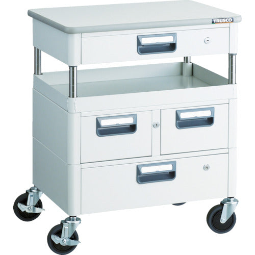 TRUSCO ツールワゴン フェニックスワゴン 抗菌 省音 600X400XH740 引出 天板付 ホワイト