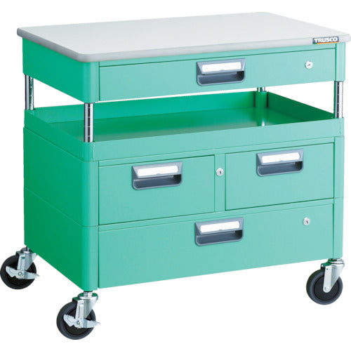 TRUSCO ツールワゴン フェニックスワゴン 抗菌 省音 750X500XH740 引出 天板付 ヤンググリーン
