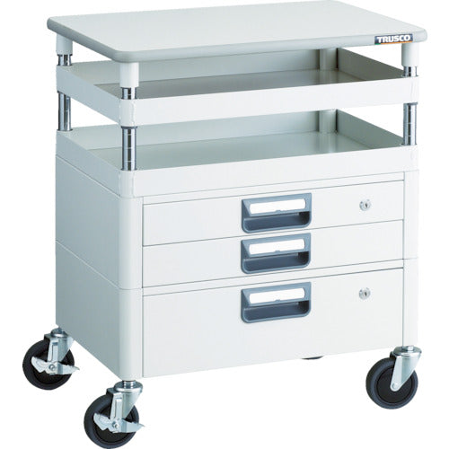 TRUSCO ツールワゴン フェニックスワゴン 抗菌 省音 600X400XH740 引出 天板付 ホワイト