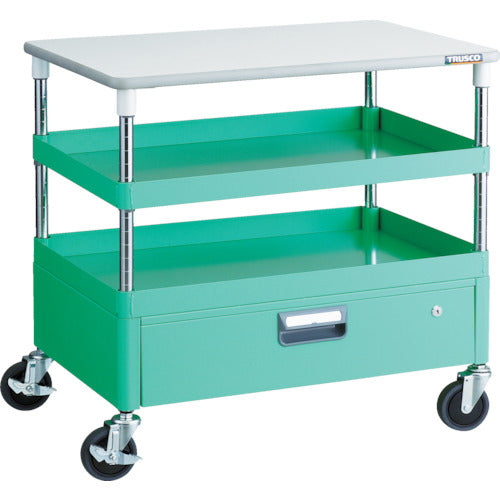 TRUSCO ツールワゴン フェニックスワゴン 省音 750X500 1段引出 天板付 ヤンググリーン