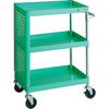 ●最大積載量(kg/台):150●均等積載量(kg/段):100●色:ヤンググリーン●間口(mm):690●奥行(mm):400●高さ(mm):880●段数(段):3●支柱径(mm):25.4●キャスター径(mm):100●こぼれ止め高さ(mm):50●棚板調整ピッチ(mm):25