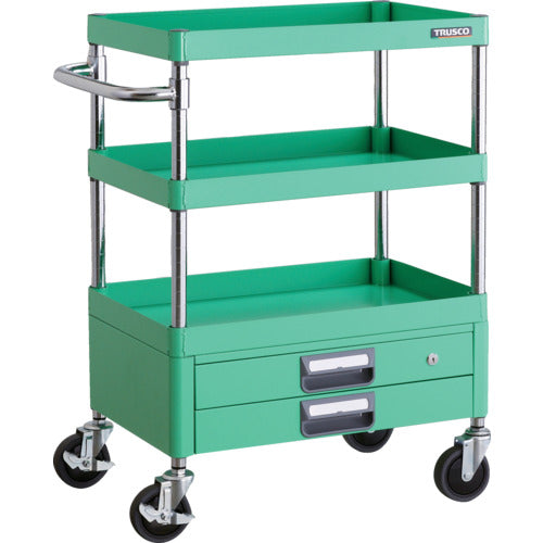 TRUSCO ツールワゴン フェニックスワゴン 省音 600X400XH880 2段引出付 ヤンググリーン