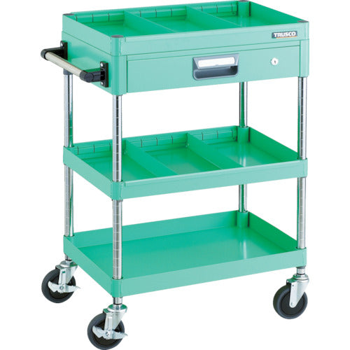 TRUSCO ツールワゴン フェニックスワゴン 省音 600X400 仕切2段付 引出付 ヤンググリーン