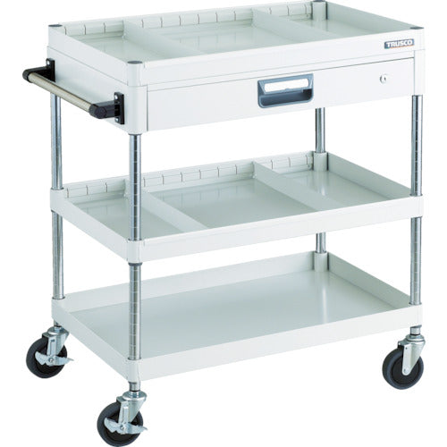 TRUSCO ツールワゴン フェニックスワゴン 省音 750X500 仕切2段付 引出付 ホワイト