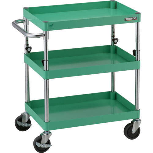 TRUSCO ツールワゴン フェニックスワゴン 省音 600X400XH700~950 3段 ヤンググリーン