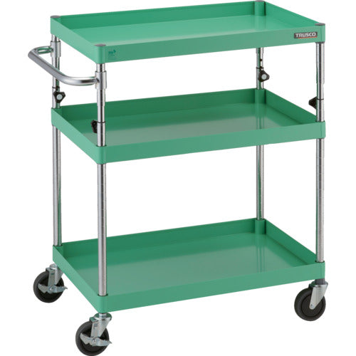 TRUSCO ツールワゴン フェニックスワゴン 省音 750X500XH880~1130 3段 ヤンググリーン