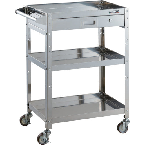 TRUSCO ステンレスワゴン クリーンラビット 75φゴム車SUS金具 1段引出ハンドル付